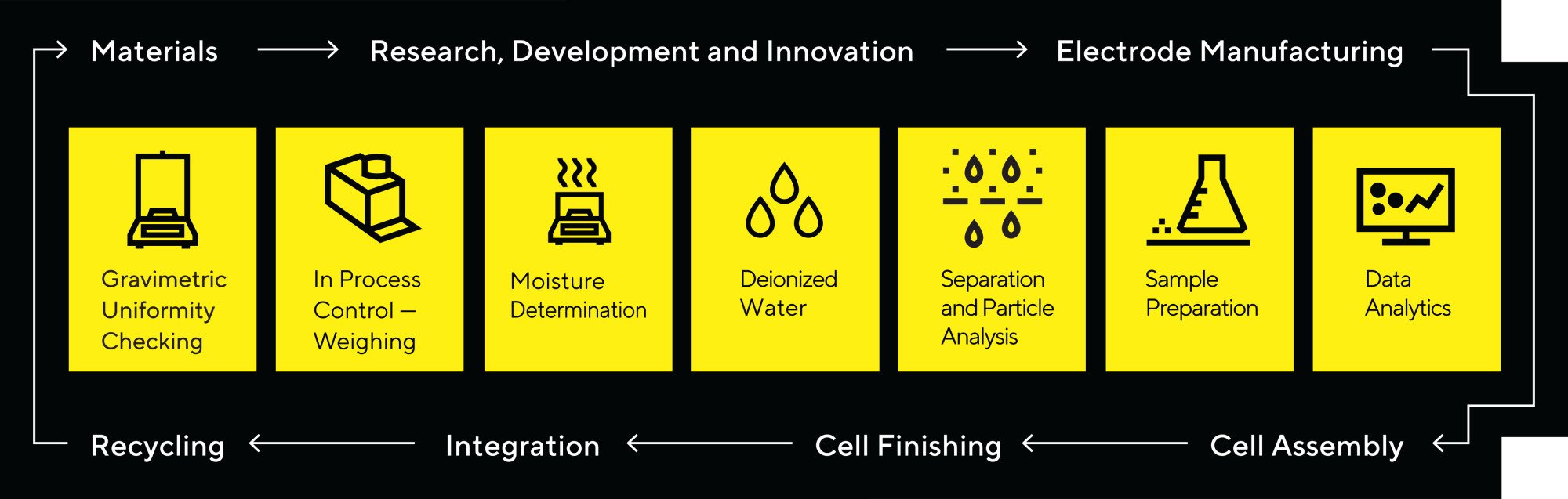 Lab equipment and integrated weighing solutions to support battery manufacturing.