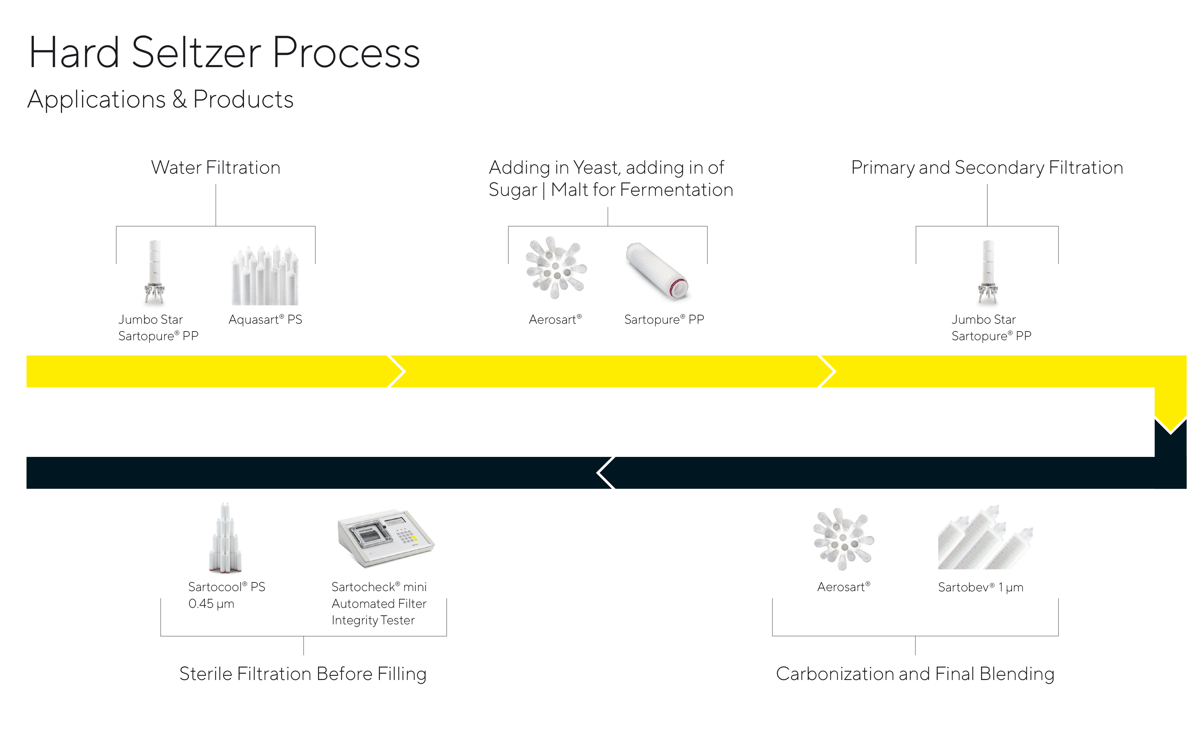 저위험 신제품 출시부터 대량 생산까지, 적절한 기술 선택은 하드 셀처의 유통기한을 개선하고 맛 프로필을 유지하는 데 중요합니다. 당사의 제품군은 여과, 풍미 보존, 미생물 안정화 및 필터 무결성 테스트를 위한 여과 제품을 포함합니다.