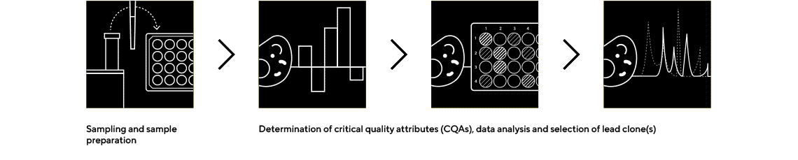 오염물질, 바이러스, 무균성 및 단백질 생산에 대해 선택된 클론을 평가하는 장비 및 서비스 모음. 핵심 측면은 중요 품질 특성(CQA)을 정의하고 단백질의 고유한 특성이 온전히 유지되도록 면밀히 모니터링하는 것이다.