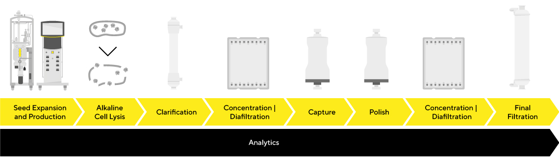 싸토리우스의 전문 과학자들이 개발한 pDNA 정제를 위한 엔드 투 엔드 솔루션입니다.